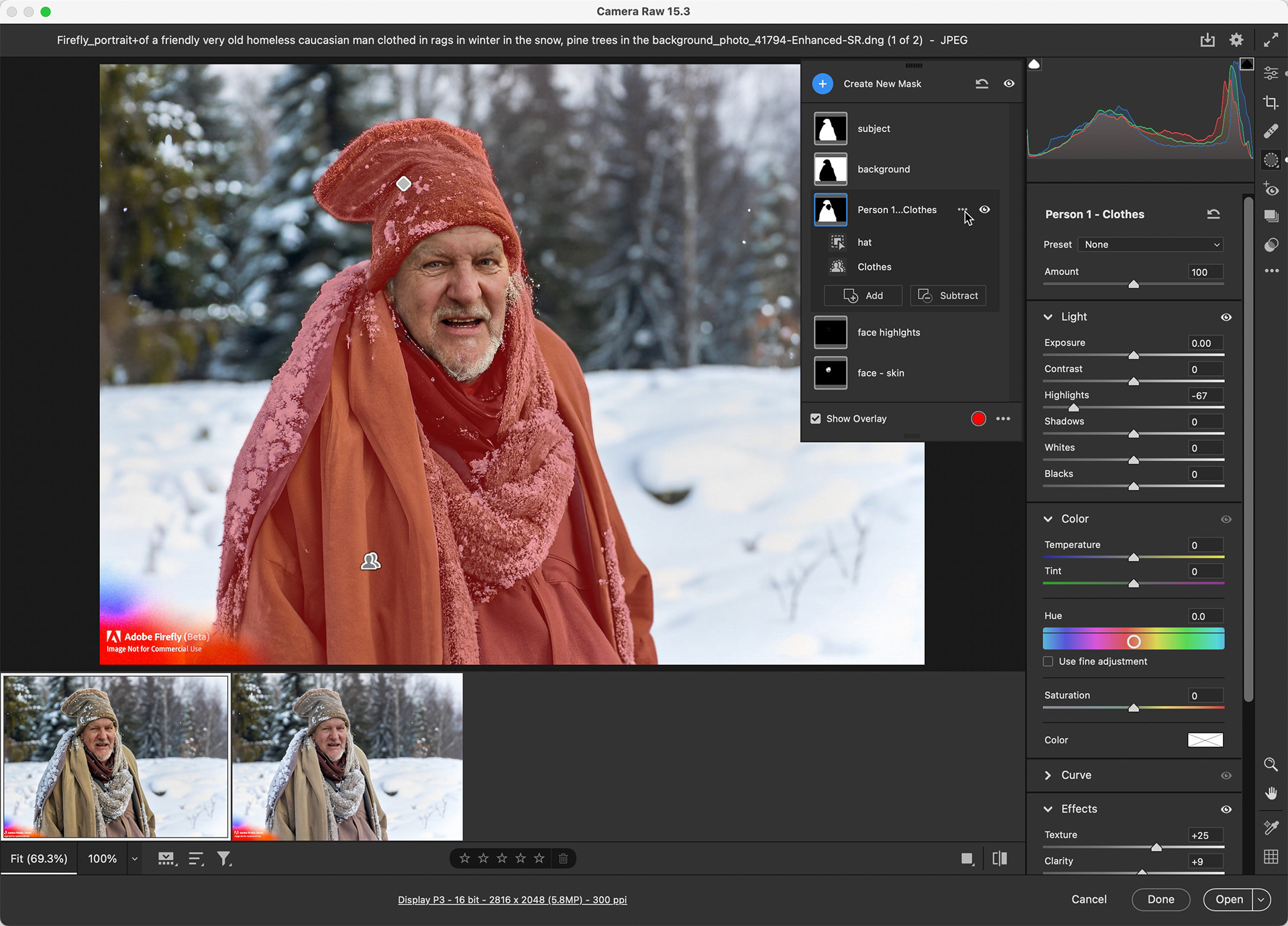 ACR did a great job of selecting the main clothing, but fell short when it came to the old man's hat. This isn't a problem though; if the mask misses an important element, you can choose add (or subtract) from the active mask using any of the masking tools. In my case, I used the Select Objects mask to add the hat to the mask.